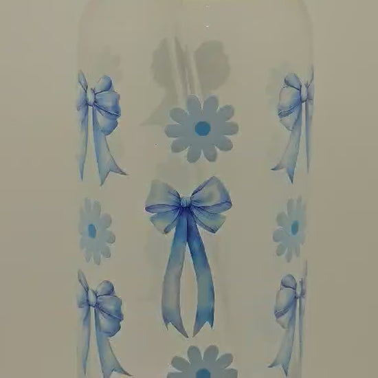 Blue bow glass 16oz tumbler