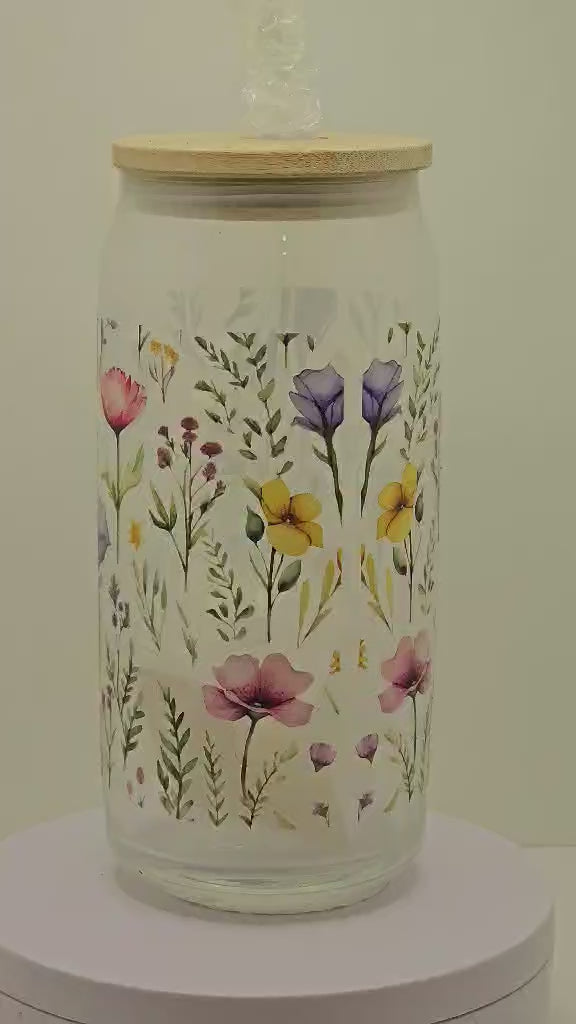 Field flowers 16 oz glass tumber